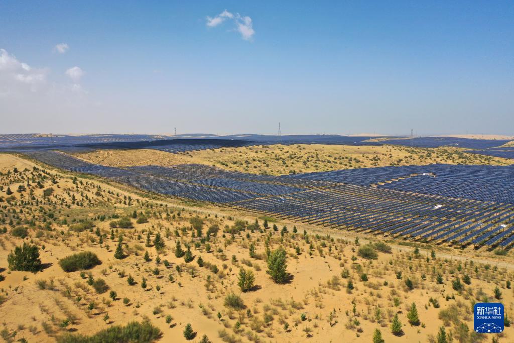 这是库布其沙漠里的蒙西基地库布其200万千瓦光伏治沙项目区(9月3日摄,无人机照片)。