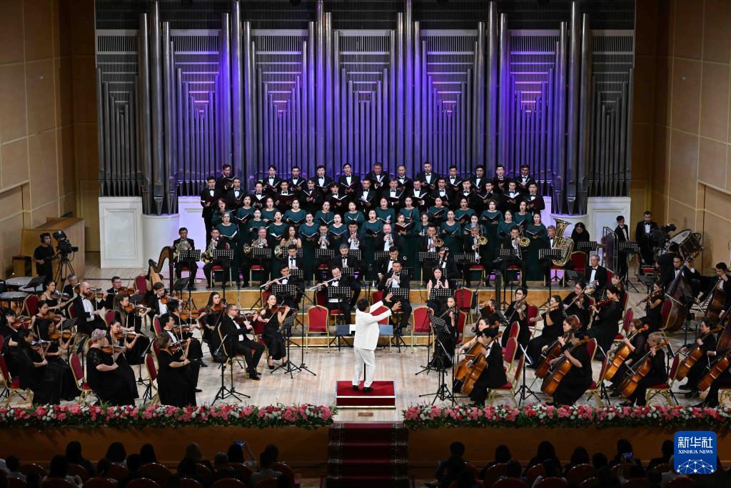 纪念中国人民抗日战争暨世界反法西斯战争胜利80周年、纪念冼星海诞辰120周年音乐会3日晚在哈萨克斯坦阿拉木图的国立江布尔音乐厅举行。阿市政府、外交领事机构、老兵协会、当地华侨华人、中资机构、留学生等各界人士近600人出席。哈国立拜卡达莫夫合唱团、阿布德拉舍夫国立模范交响乐队共同演绎《黄河大合唱》《阿曼盖尔德》等作品。观众们自发挥舞中哈两国国旗,齐声高唱歌曲,现场气氛澎湃激昂。
