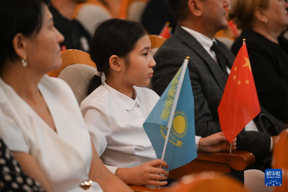 9月3日,在哈萨克斯坦阿拉木图举行的纪念抗战胜利80周年音乐会上,观众们自发挥舞中哈两国国旗,齐声高唱《保卫黄河》。