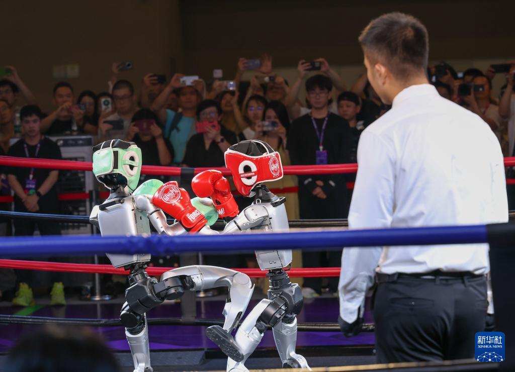这是9月5日在2025世界智能产业博览会上拍摄的人形机器人拳击比赛。