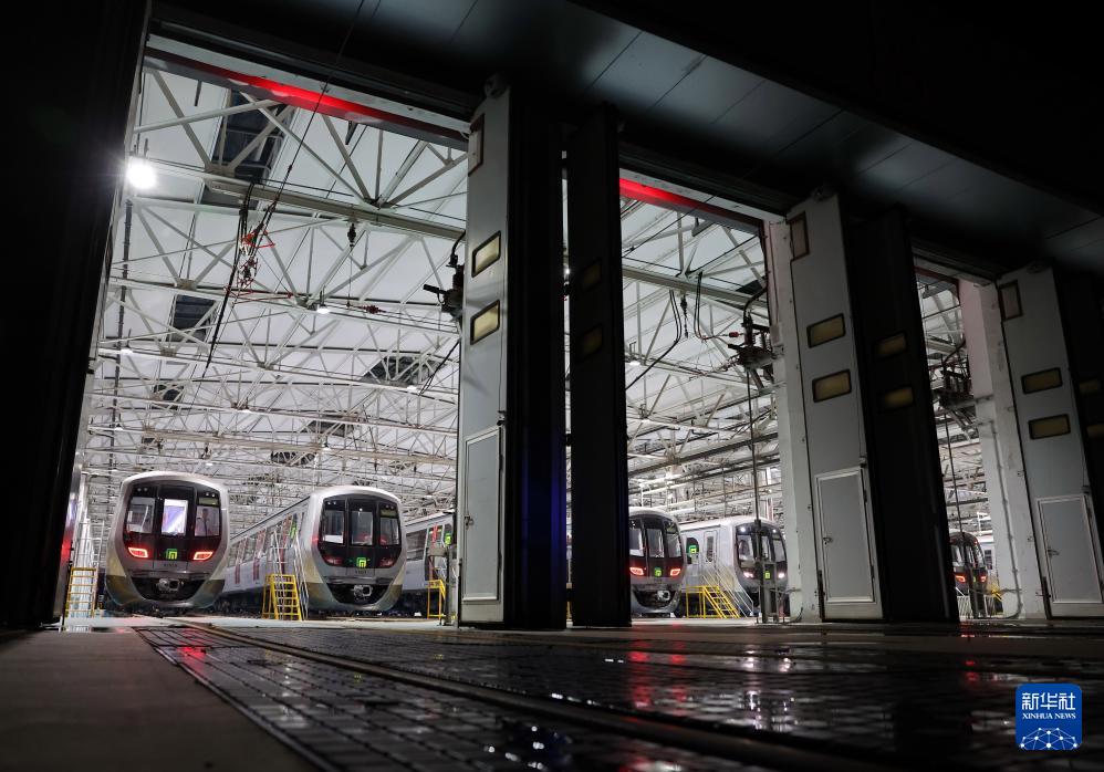 9月9日,地铁列车在石家庄市地铁西兆通车辆段整装待发。