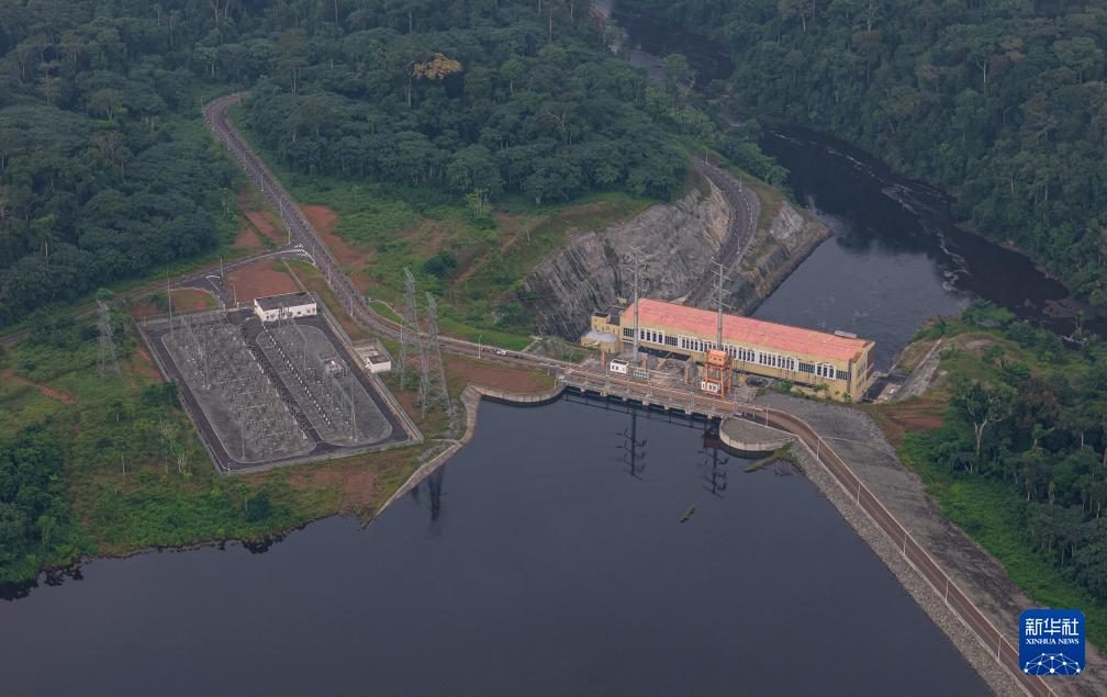 这是在喀麦隆南部大区拍摄的曼维莱水电站(无人机照片,6月29日摄)。