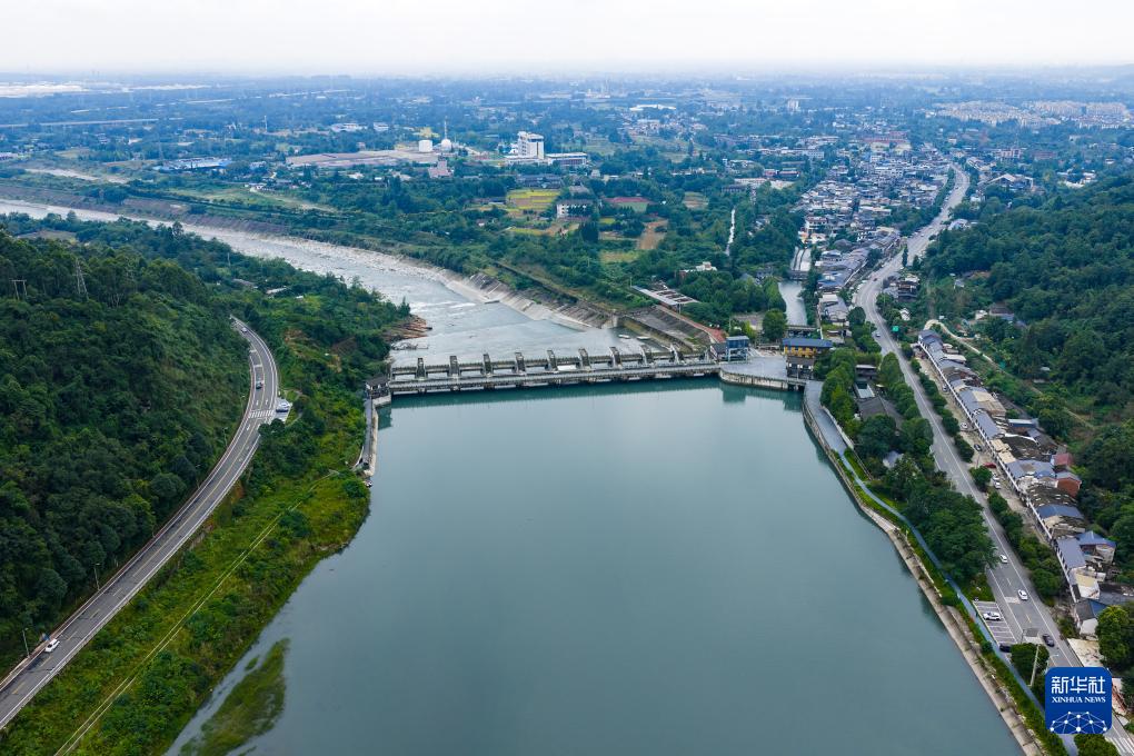 9月10日拍摄的四川彭州湔江堰(无人机照片)。