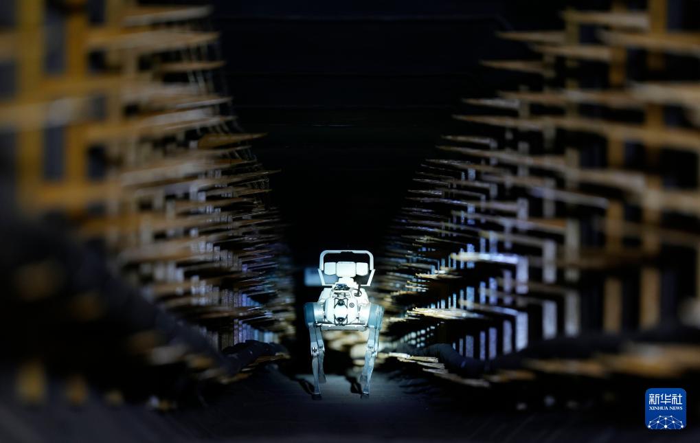 9月10日,机器狗在狭窄的电缆通道内进行自动巡检。