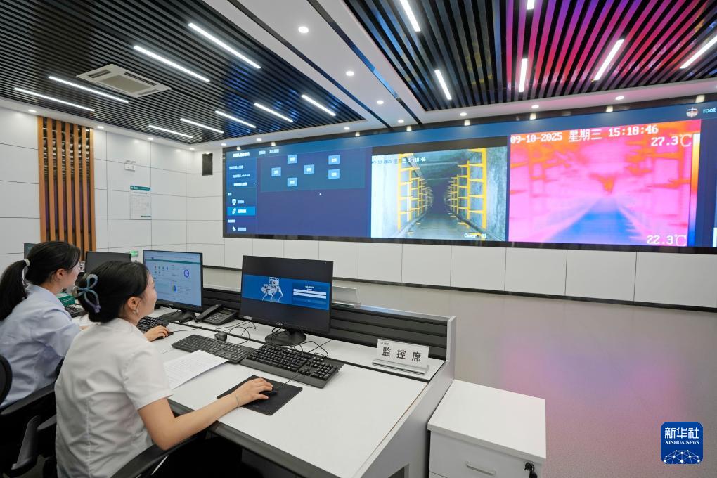 9月10日,国网银川供电公司闽宁供电所工作人员在后台通过机器狗传回的画面实时监测电缆通道内的相关数据。
