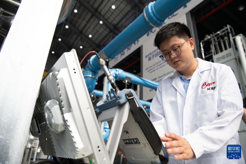 9月11日,在位于合肥市的聚变堆主机关键系统综合研究设施园区内,科研人员在查看离子回旋加热系统的运行状态。