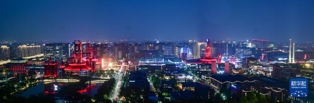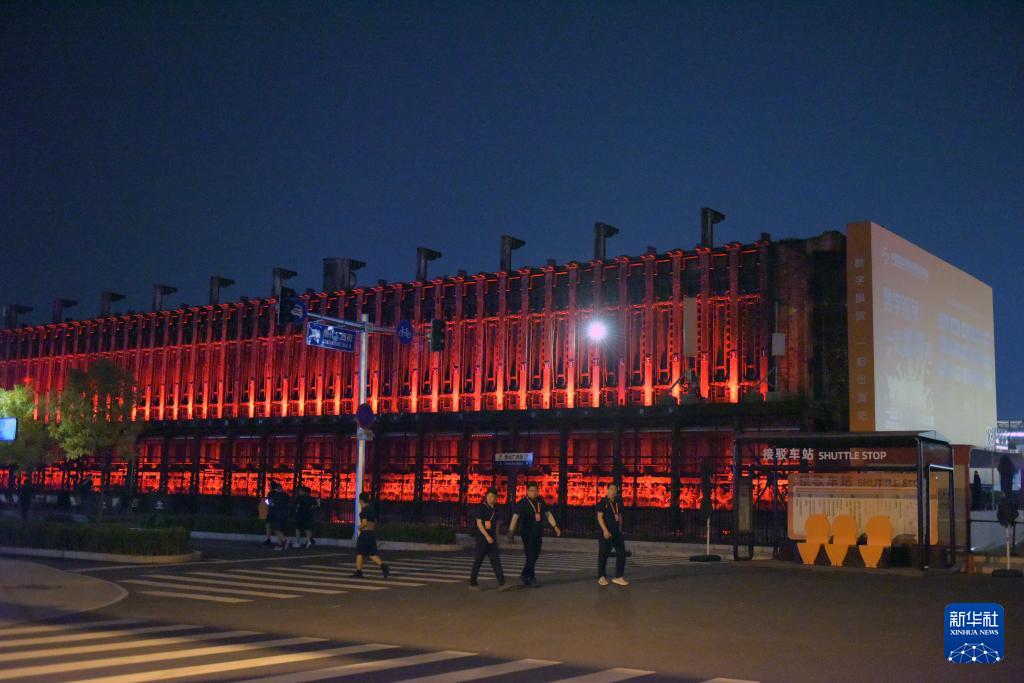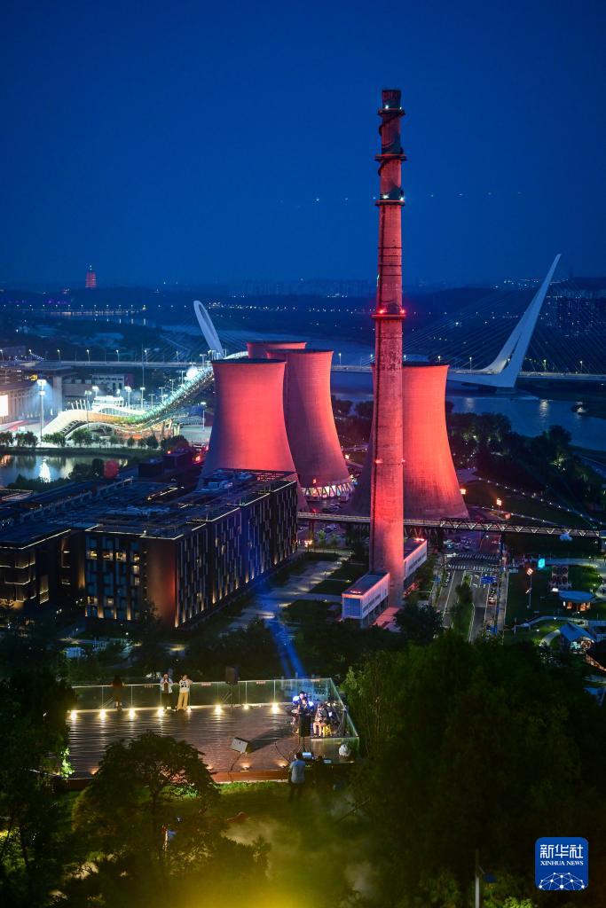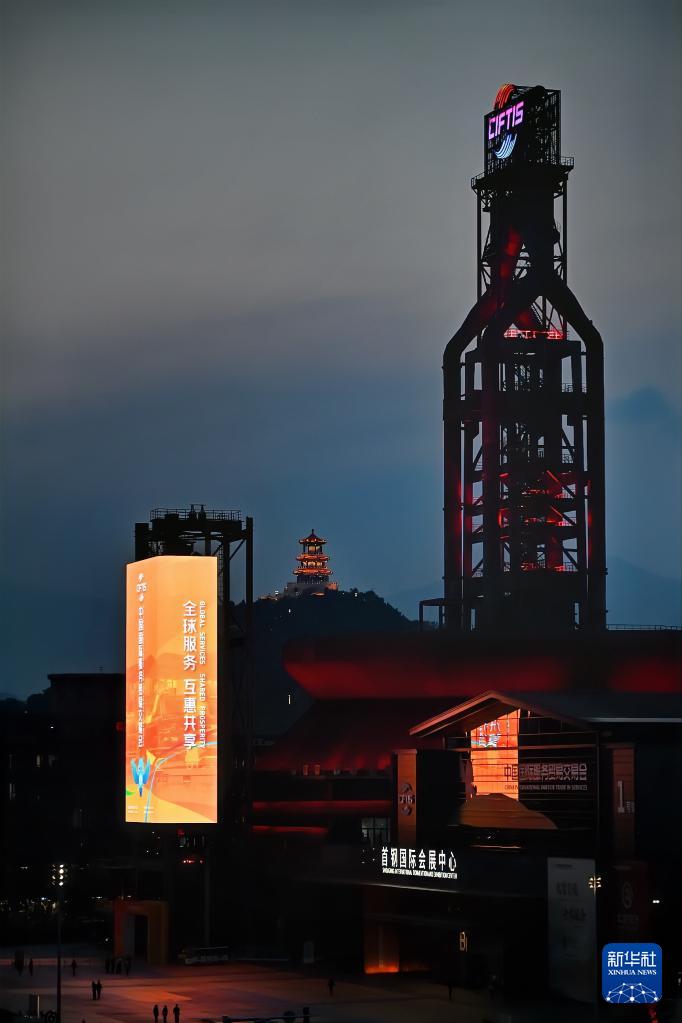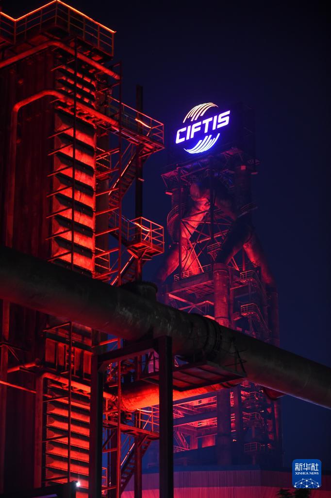 2025年中国国际服务贸易交易会于9月10日至14日在北京首钢园区举办。夜幕下,首钢园区内工业遗存在现代灯光辉映下,展现出别样之美。