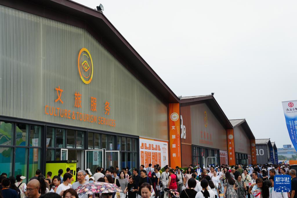 9月13日,在北京首钢园拍摄的2025年服贸会文旅服务展馆西城区展台。