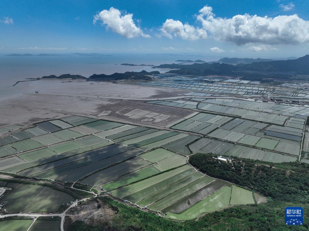 鸟瞰浙江省三门县浦坝港镇的蟹塘(9月16日摄,无人机照片)。