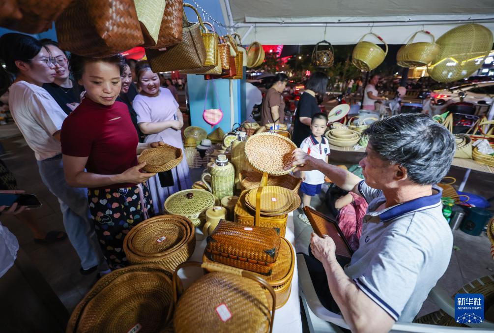 9月16日,市民在共富市集上选购传统竹编制品。