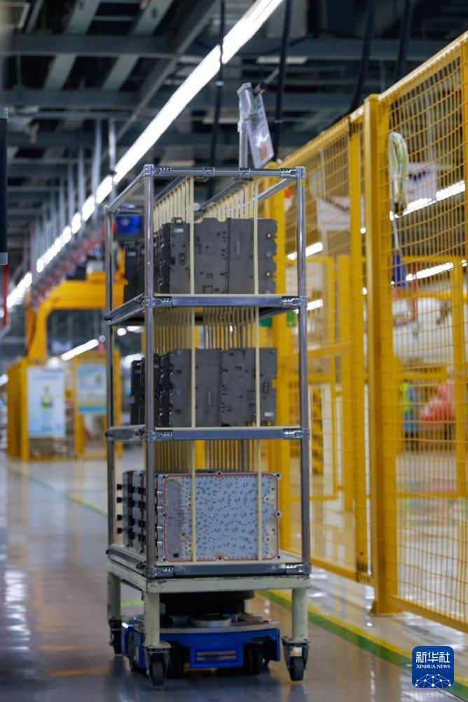 9月15日,一辆AGV自动驾驶小车在江苏无锡高新区综合保税区捷普电子(无锡)有限公司的生产车间里运输原材料。