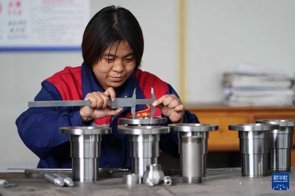 6月20日,河北省邢台市柏乡县一家工矿机械制造企业的员工在检测产品零部件。