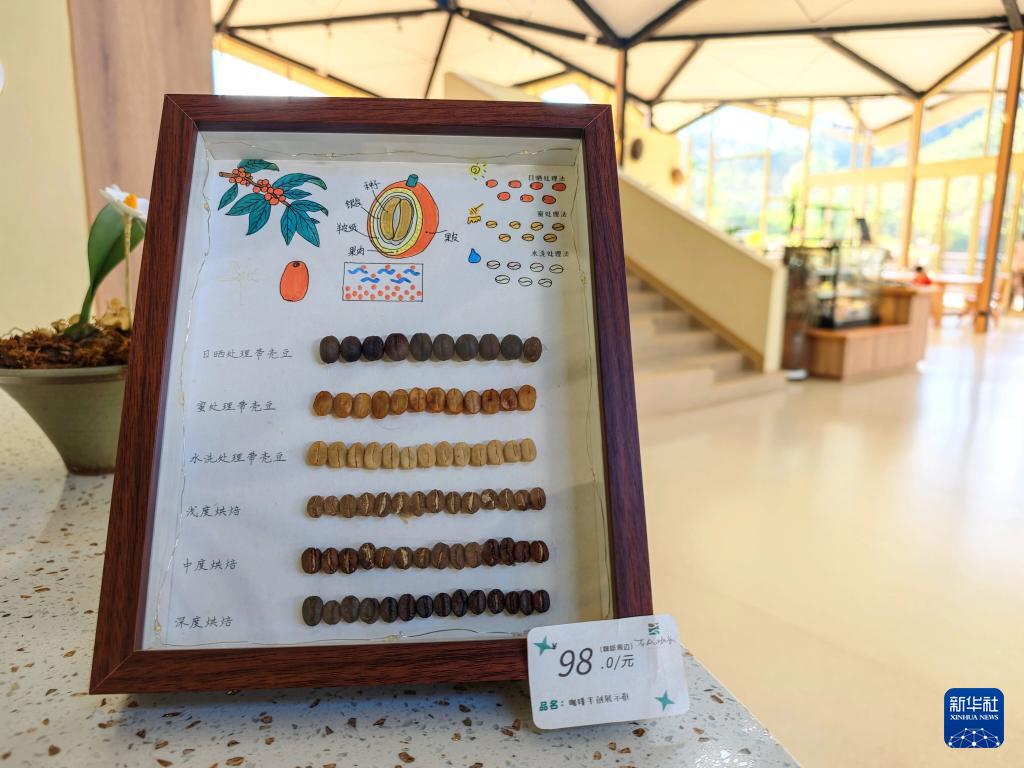 9月20日,普洱市思茅区南屏镇南岛河村白沙坡小组的“美丽星村·有风咖谷”工作人员在展示咖啡豆的处理过程。