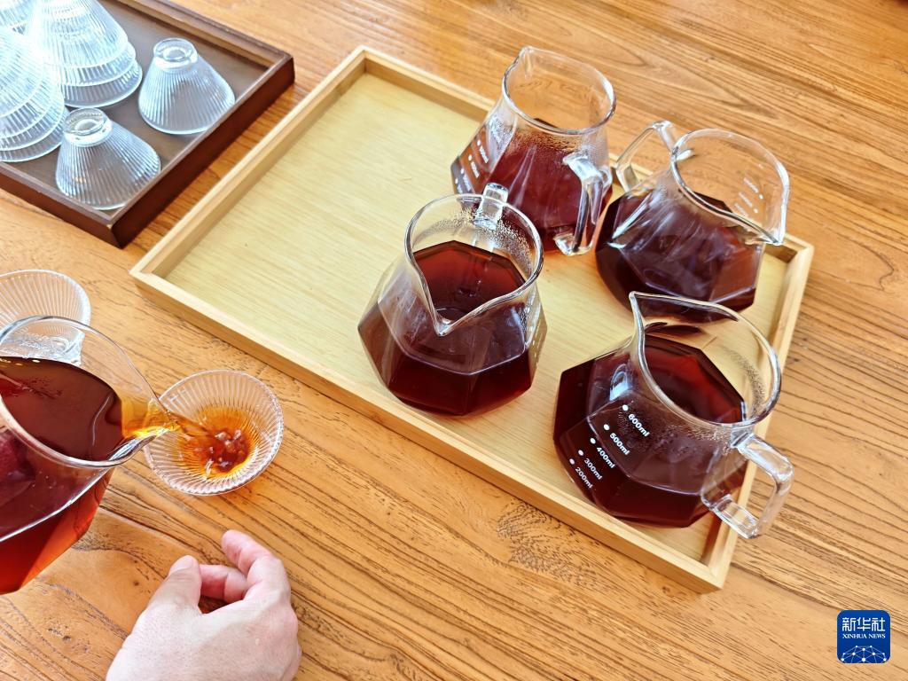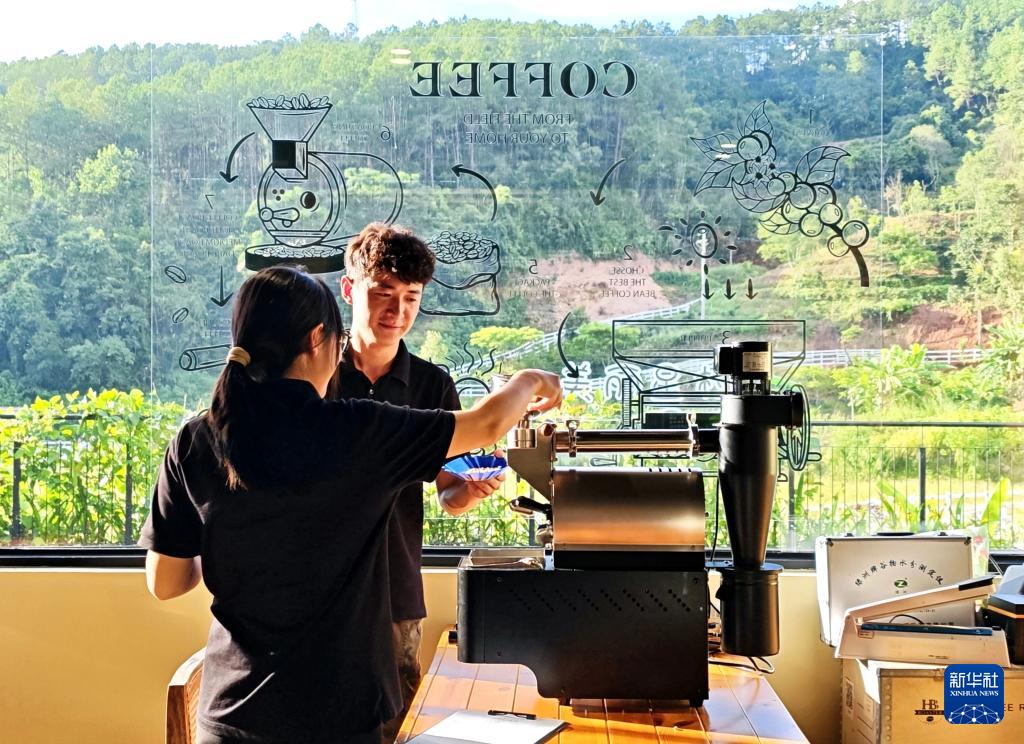 这是普洱市思茅区南屏镇南岛河村白沙坡小组的“美丽星村·有风咖谷”的咖啡师制作的咖啡(9月20日摄)。