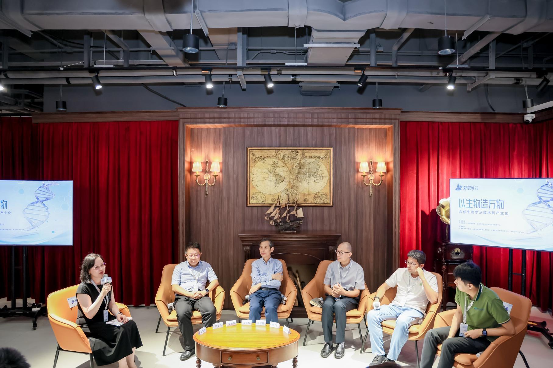 合成生物学相关领域专家学者、科技企业创始人、知名投资机构负责人等100余人共同参与了本期沙龙活动。在圆桌讨论环节,马延和所长与中国科学院过程工程所研究员邢建民、上海合成生物学创新中心副院长付小龙,以及合成生物学技术领域的科创企业代表,就合成生物学的技术进展和商业化前景等进行深入讨论。