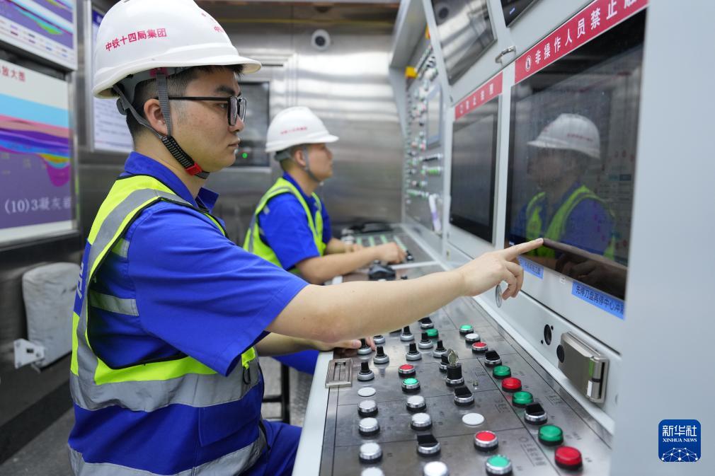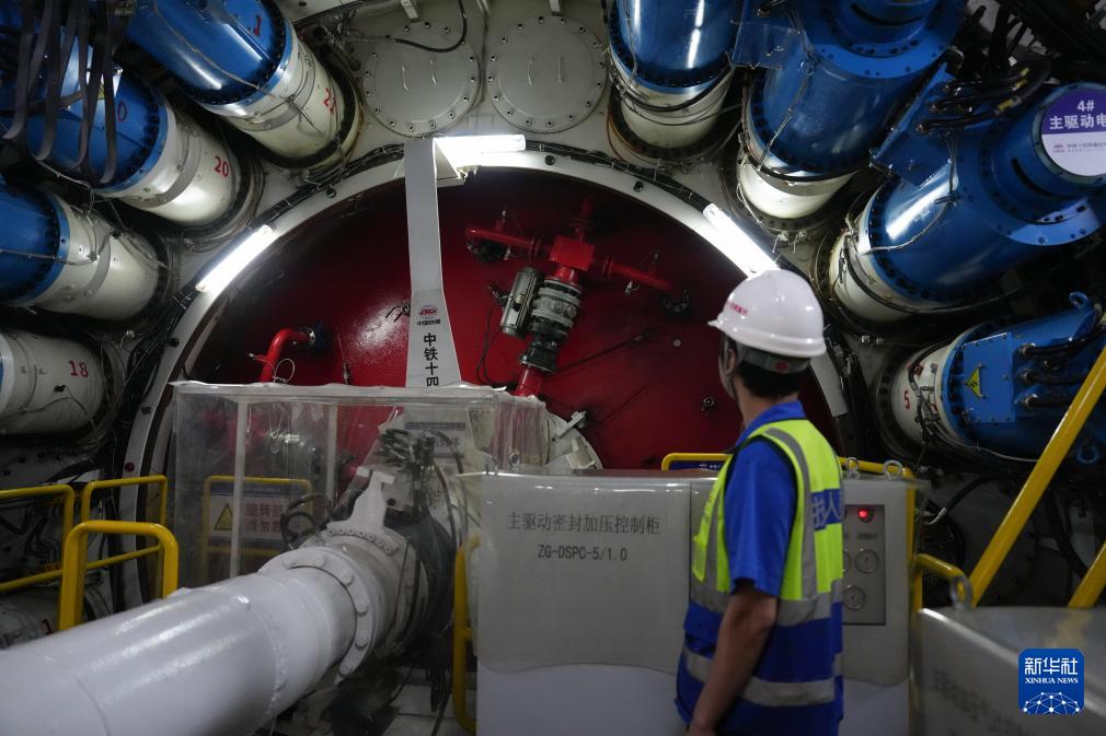 9月22日,中铁十四局技术人员在甬舟铁路金塘海底隧道“甬舟号”盾构机内关注设备运行情况。