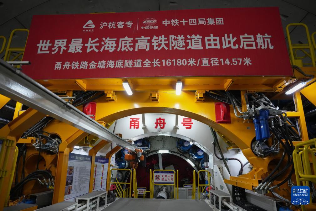 甬舟铁路金塘海底隧道西起浙江宁波市北仑区,东至舟山市金塘镇,全长16.18公里,是世界最长海底高铁隧道。