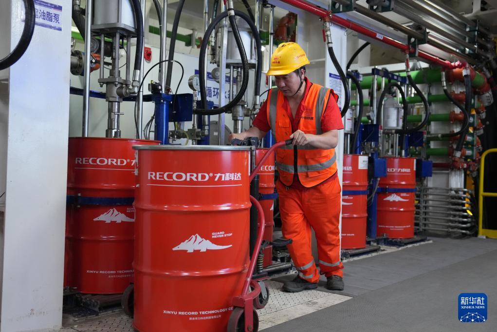 9月22日,中铁十四局施工人员在甬舟铁路金塘海底隧道“甬舟号”盾构机内进行盾尾油脂更换作业。