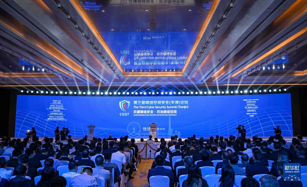 这是9月23日拍摄的第三届网络空间安全(天津)论坛开幕式现场。