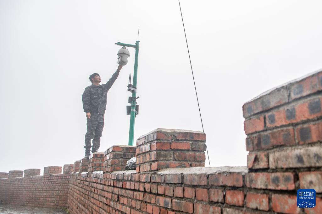 9月23日,在金佛山黑叶猴远程视频监控点,工作人员李新在检查观测设备。