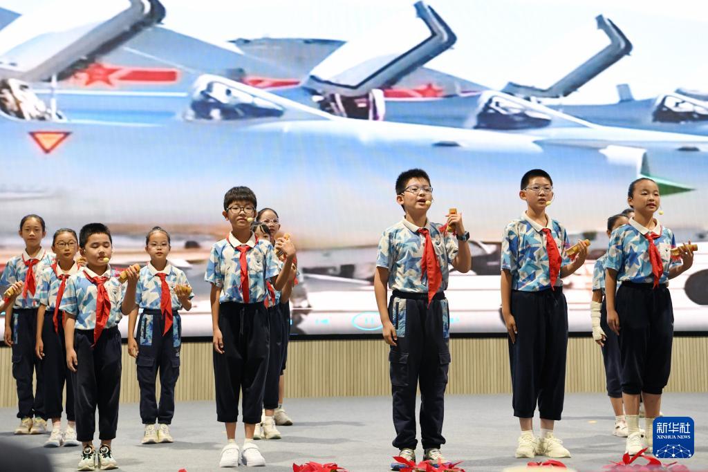 9月24日,北京市第二十中学附属育鹰小学学生在活动开幕式上表演快板《战鹰集结》。