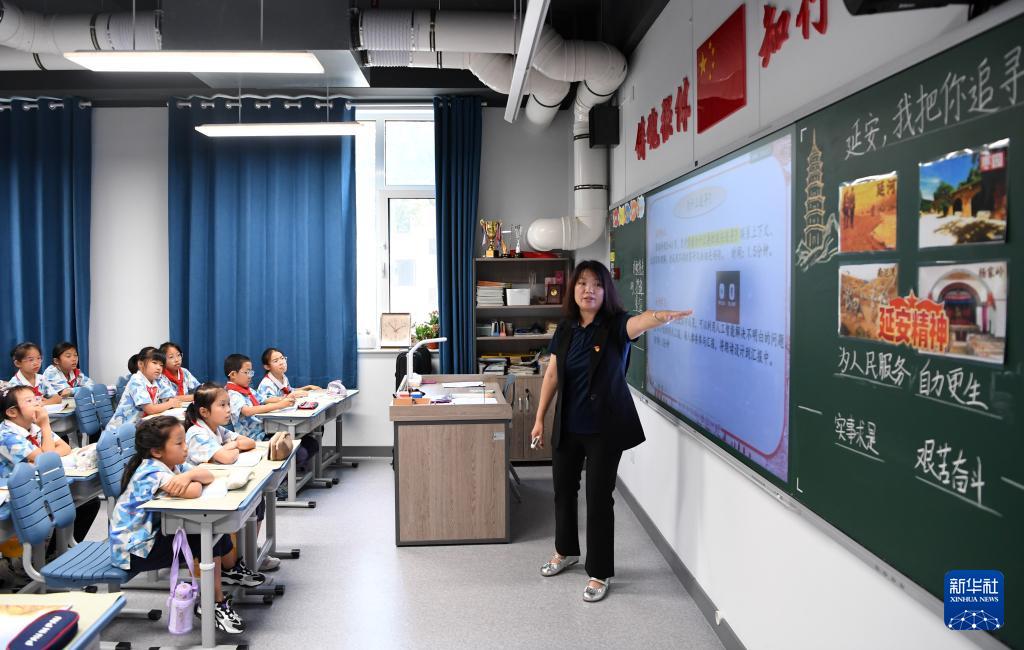 9月24日,老师为北京市第二十中学附属育鹰小学学生教授国防教育基础课《延安,我把你追寻》。