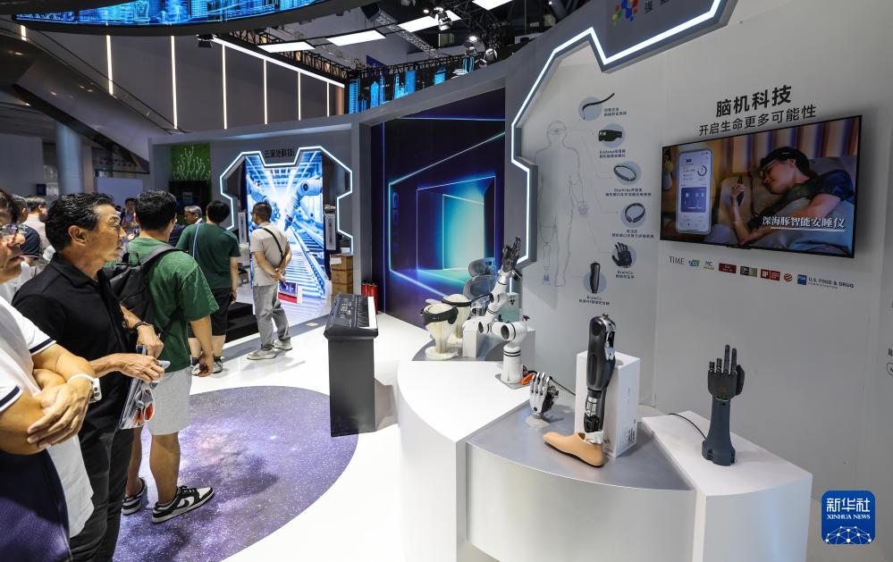 9月25日,在第四届全球数字贸易博览会的数智未来主题展区的杭州六小龙专区,观众在观看强脑科技的仿生灵巧手。