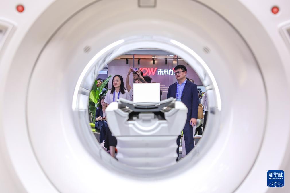 9月25日,观众在第四届全球数字贸易博览会数字医疗展区参观智能医疗设备。