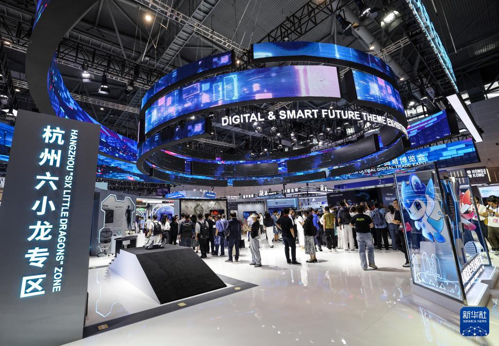 这是9月25日拍摄的第四届全球数字贸易博览会数智未来主题展区的杭州六小龙专区。