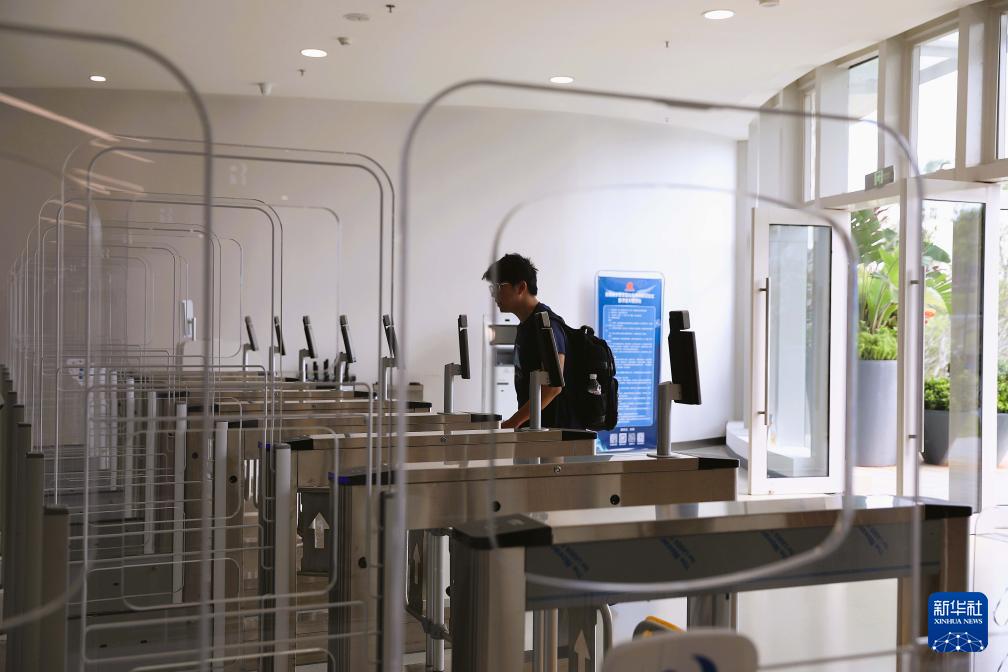 9月25日,一名学生走进海南陵水黎安国际教育创新试验区的图书馆。该馆门禁采用无感借阅系统,可通过人脸识别关联学生名下借阅的书目情况。