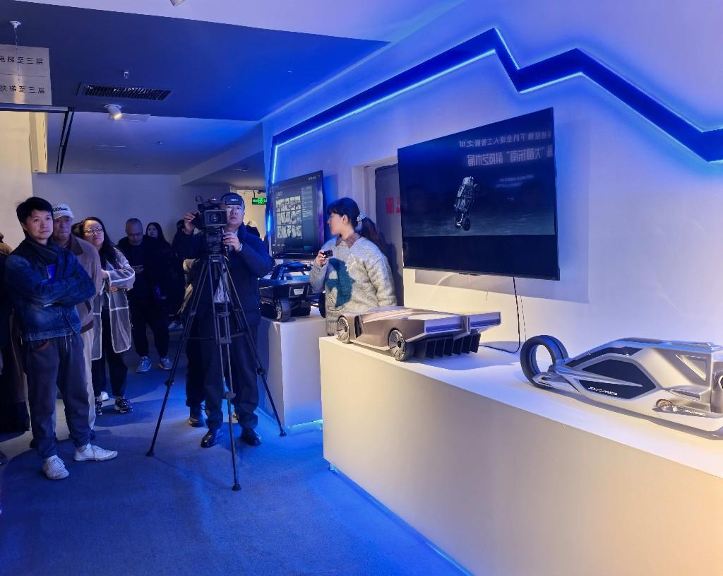 互动体验是本次展览的一大亮点。触摸《鼓舞共乐》中乐伎的衣袖,力度变幻间便能奏响专属旋律;手握箭杆操控《龙宫戏影》,亲身参与皮影戏的剧情演绎;转动《九州共月》的发光“月光球”,墙面上的数字卷轴便会流转出阴晴圆缺的月相变化。室外展项《亦城智行》更还原智能座舱场景,让车身光影与空气动力学曲线共筑沉浸式体验场。