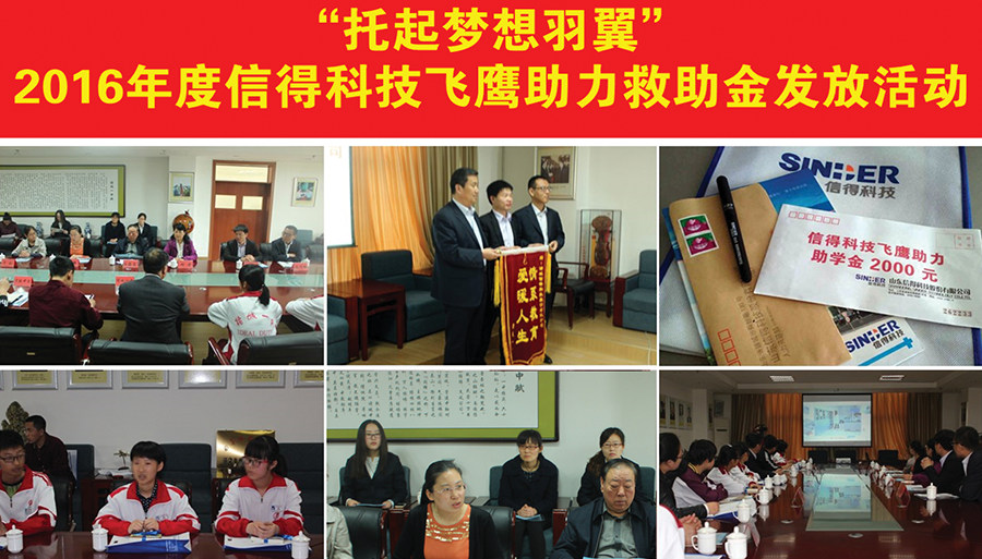 2017年2月,举行了开展新春慈善拍卖会,所得款项捐给“希望工程关爱基金”。4月,联合共青团诸城市委开展了2017年“点燃希望,筑梦起航” 尊龙凯时飞鹰助力救助金发放活动。