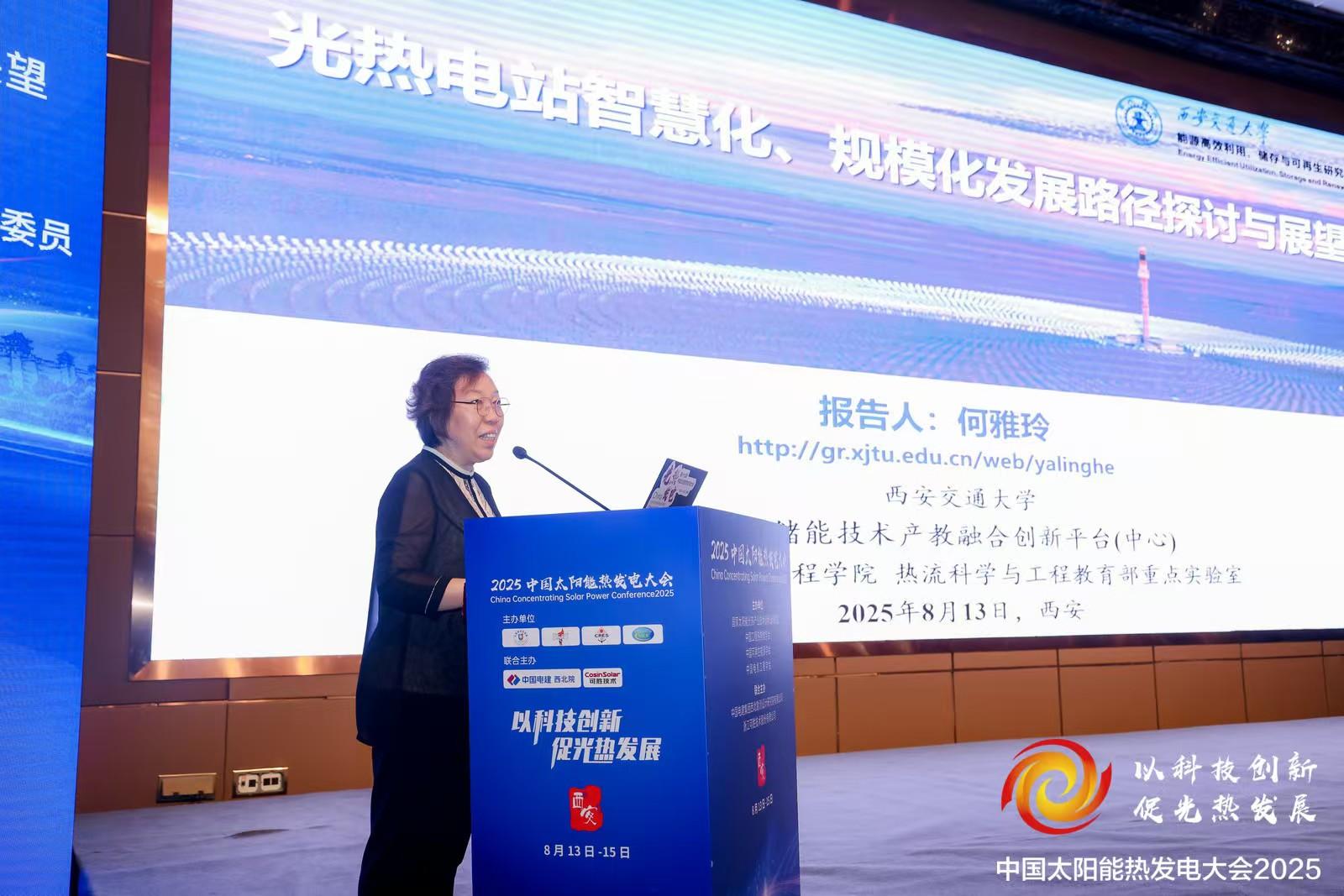 本报讯(记者 叶伟)8月13-15日,由国家太阳能光热产业技术创新战略联盟、中国工程热物理学会、中国可再生能源学会、中国电机工程学会主办,中国电建集团西北勘测设计研究院有限公司、浙江可胜技术股份有限公司联合主办的2025中国太阳能热发电大会在西安盛大开幕。大会汇聚了中国科学院院士、国家能源局相关领导、IEA SolarPACES等国内外科研机构专家及产业链企业820多名代表,围绕光热发电智能化、规模化发展路径、成本优化、技术突破等核心议题展开深入研讨,为推动光热发电在新型电力系统中的规模化应用凝聚共识。大会开幕式由太阳能光热产业技术创新战略联盟副理事长/教授级高工刘路平主持。