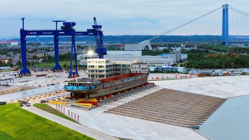 9月24日,中铁科工首创集成式船舶反拉滑道下水“晟航”系统实船试验在湖北宜昌产投(宜都)绿色智能船舶产业园区顺利进行,标志着我国在船舶建造特种装备领域实现技术新突破,为沿江、沿海及内陆地区船舶产业绿色智能升级提供全新“一站式”智能装备解决方案。