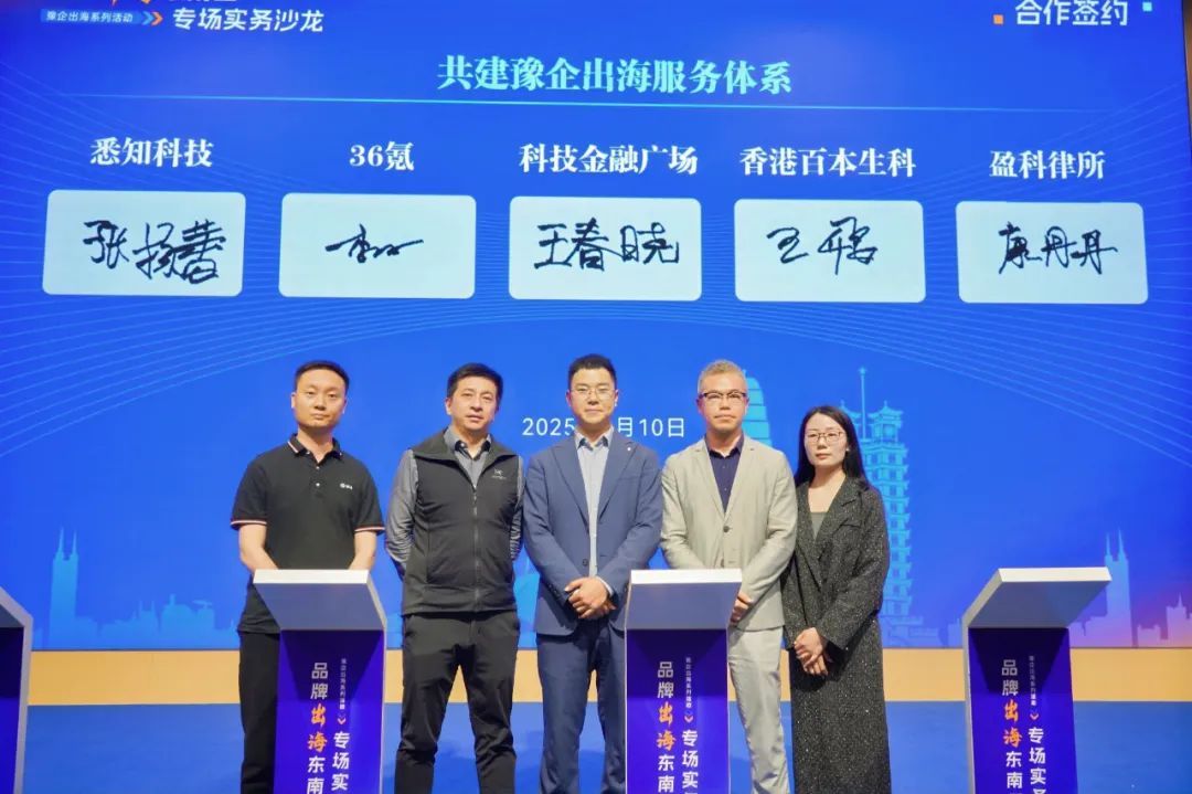 在活动现场,郑州科技金融广场与36氪签约共建出海企业新加坡、迪拜服务站,同时还与36氪、悉知科技、香港百本生科、盈科律所一同签约共建豫企出海服务体系。对此,王春晓表示,希望通过服务站郑州高新区企业可以更快捷地了解新加坡及东南亚地区、中东地区等市场动态、政策法规和人才流动趋势。同时服务站还将为高新区企业提供产品展示、商务对接、投资咨询、法律支持等全方位服务,助力企业在海外市场稳健发展。