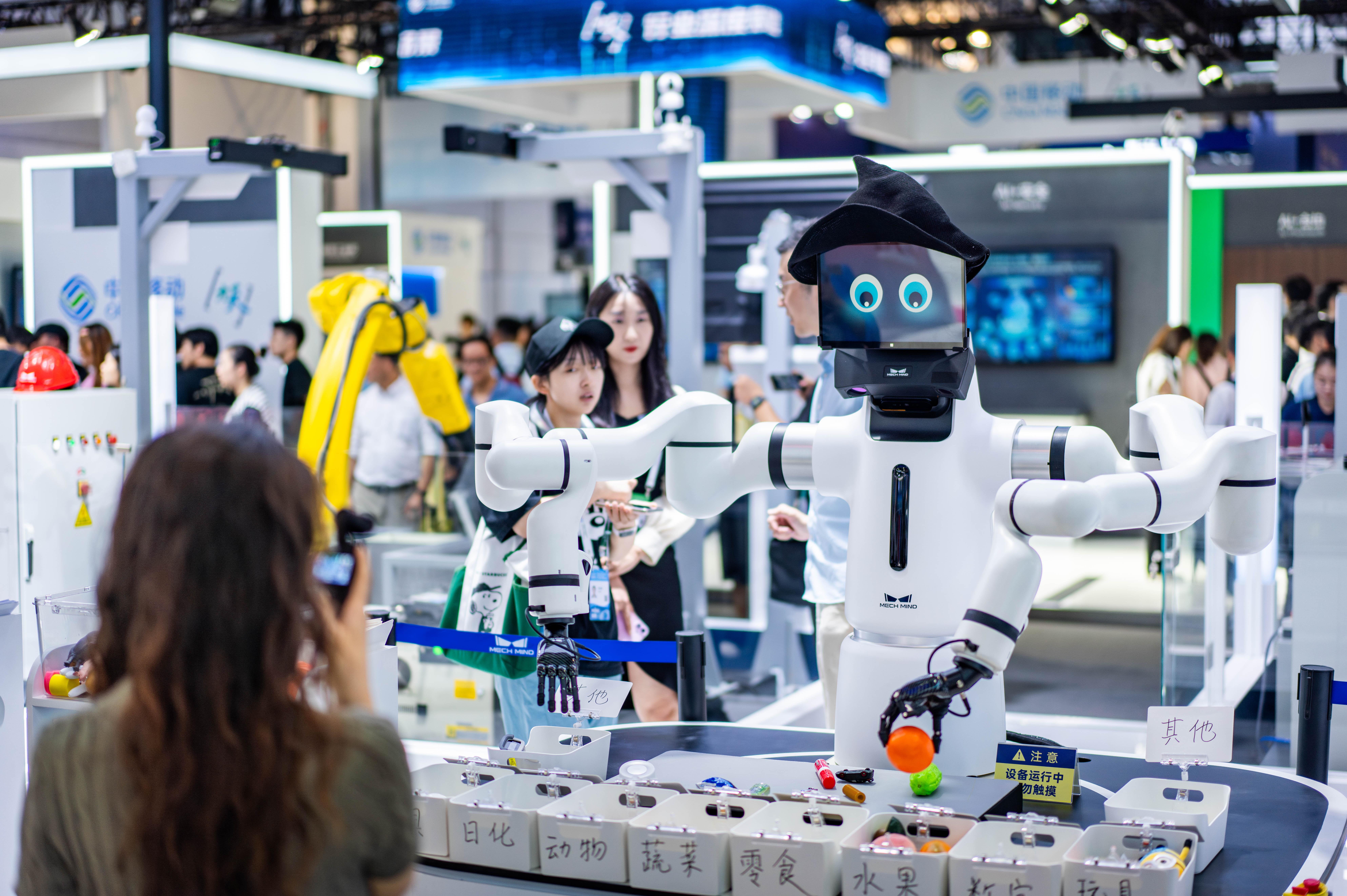 “这次我们携自研通用机器人‘眼脑手’全栈技术产品亮相,并首次全景展示了具身智能‘眼脑手’与单臂、双臂、人形等多种机器人形态的融合应用。”梅卡曼德创始人、CEO邵天兰化身产品代言人向记者介绍,梅卡曼德现场展示的应用范围涵盖智能制造、智慧物流、医药、零售、食品、服装、家庭服务等多个领域,将智能延伸进入物理世界,使人工智能不局限于数字世界中,让机器人具有了识别、规划、思考能力。
