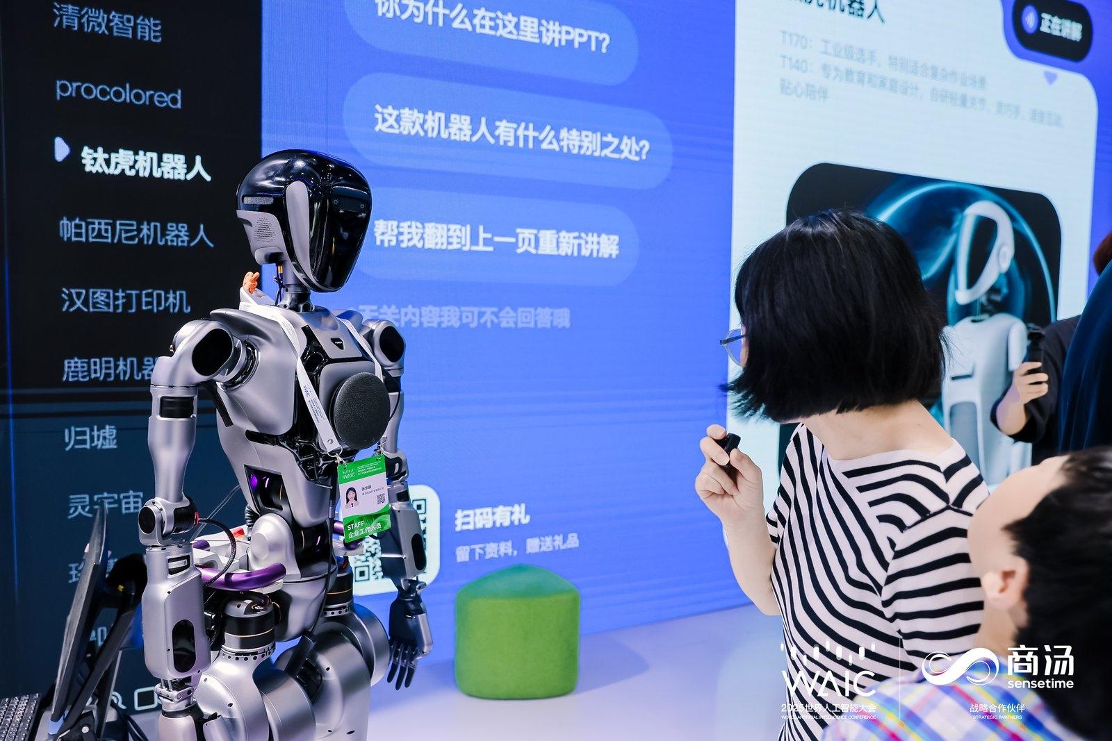 比如,能和人类一样对弈下棋的元萝卜AI下棋机器人,能够给孩子讲解各种知识的灵宇宙随身学伴,展现了AI赋能打造的寓教于乐的学习体验。全球首款宠物喂养AI毛绒玩具、芙崽 AI养成潮玩等多款智能交互玩偶,也亮相商汤展台,以多模态交互能力,让AI的陪伴更有温度。傅利叶、钛虎、鹿明、鲸鱼AI、帕西尼等多家机器人矩阵式也悉数亮相。