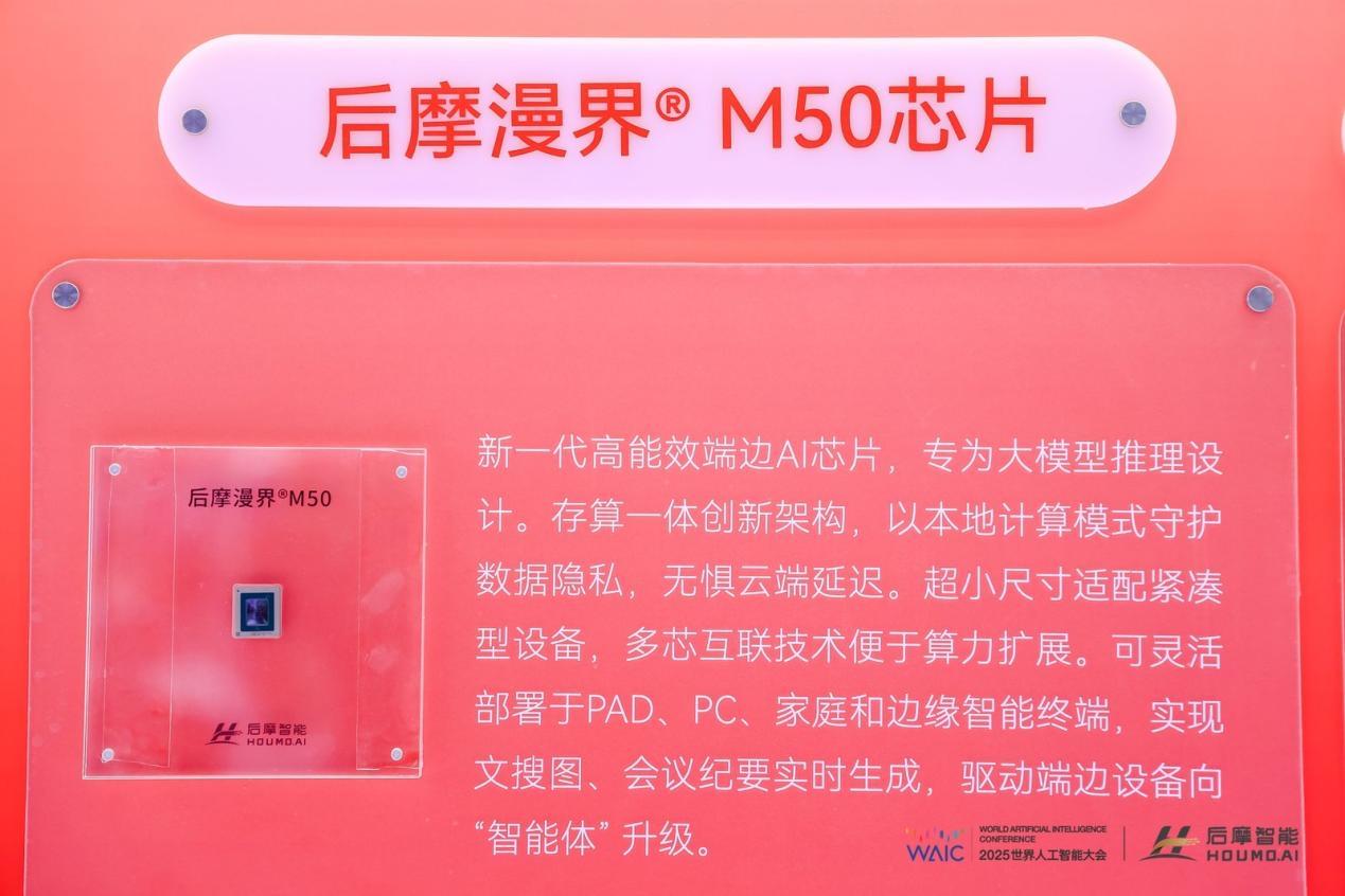 7月26日,2025年世界人工智能大会(WAIC 2025)在上海世博展览馆开幕,大会以“智能时代同球共济”为主题,汇聚全球人工智能领域的顶尖企业、专家学者与行业精英。作为端边大模型 AI芯片的领跑者,后摩智能携全新发布的端边大模型 AI芯片后摩漫界?M50 (以下简称M50 )系列产品、后摩漫界?M30 (以下简称M30 )系列产品及端边大模型应用方案亮相,全面呈现存算一体技术在端边场景的落地成效。