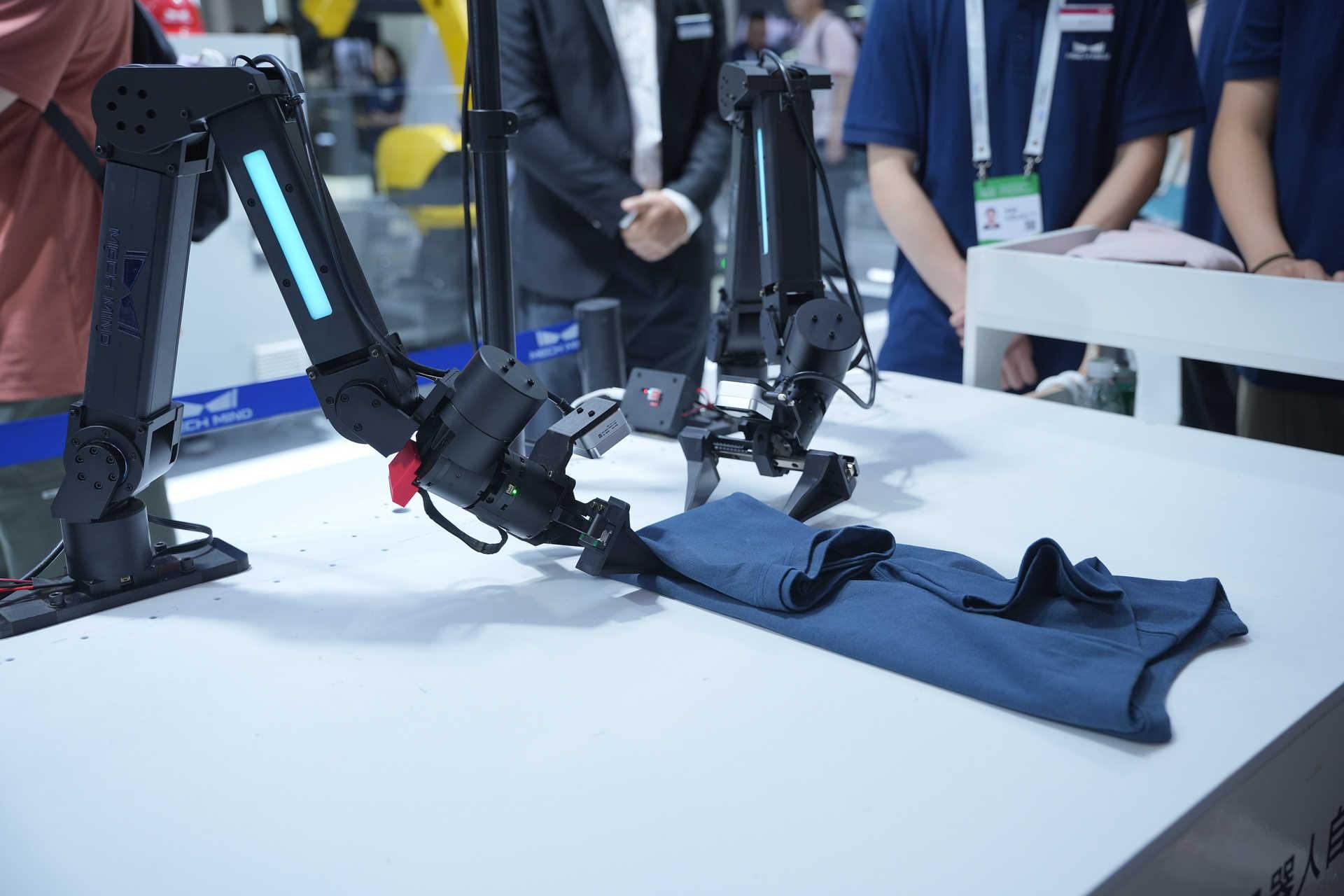 据悉,梅卡曼德作为全球具身智能机器人领域独角兽企业,此次重磅亮相WAIC 2025前沿科技展区,现场展出了自研Mech-Eye高精度3D相机、Mech-GPT多模态大模型以及Mech-Hand五指灵巧手等通用机器人“眼脑手”全栈技术产品,以及双臂机器人叠衣、人形机器人取货、海量物体分拣等近10个前沿具身智能应用单元。