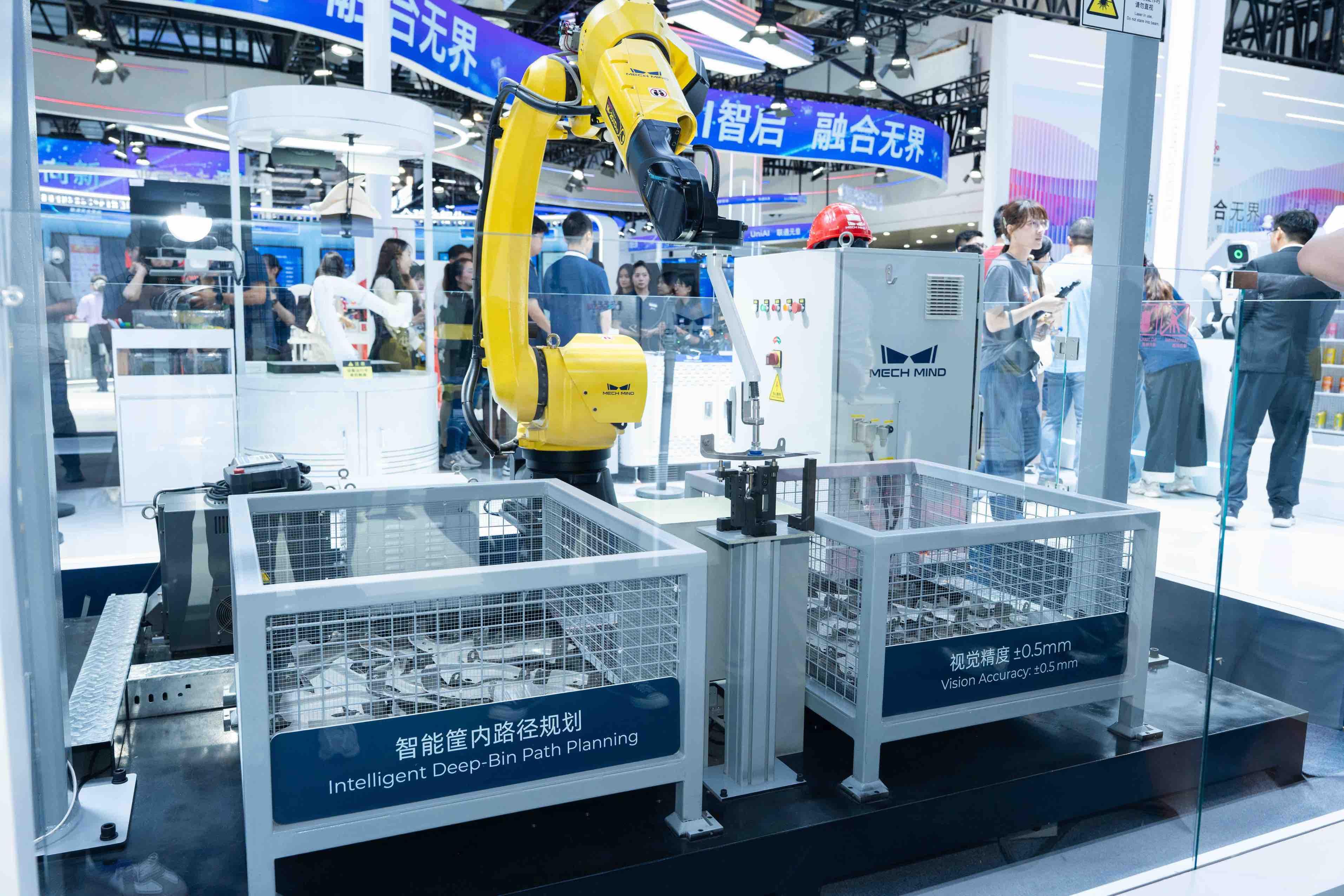“梅卡曼德的AI视觉系统能够应对钣金件反光、异形、乱序堆叠等复杂工况,在大于3米的距离下精准识别钣金件及其关键特征,视觉精度达±0.5毫米。”邵天兰以WAIC 2025展台中的AI视觉引导钣金件深筐无序上料应用场景为例解释说。