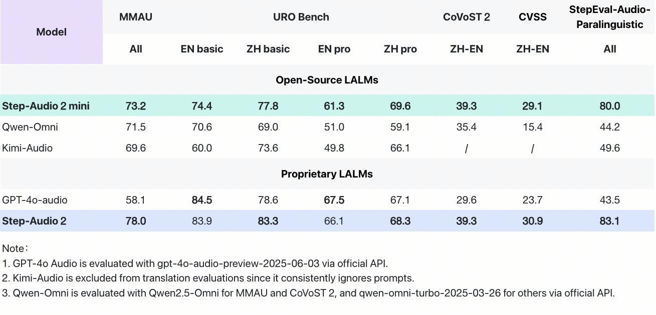 9月1日,阶跃星辰正式发布最强开源端到端语音大模型 Step-Audio 2 mini,该模型在多个国际基准测试集上取得SOTA(State-of-The-Art,即当前最佳水平)成绩。