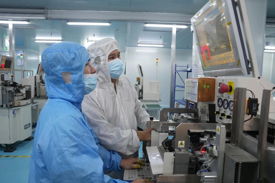 • 7月15日,在内江高新区四川晶导微电子有限公司的无尘车间内,智能化生产线正高速运转。
