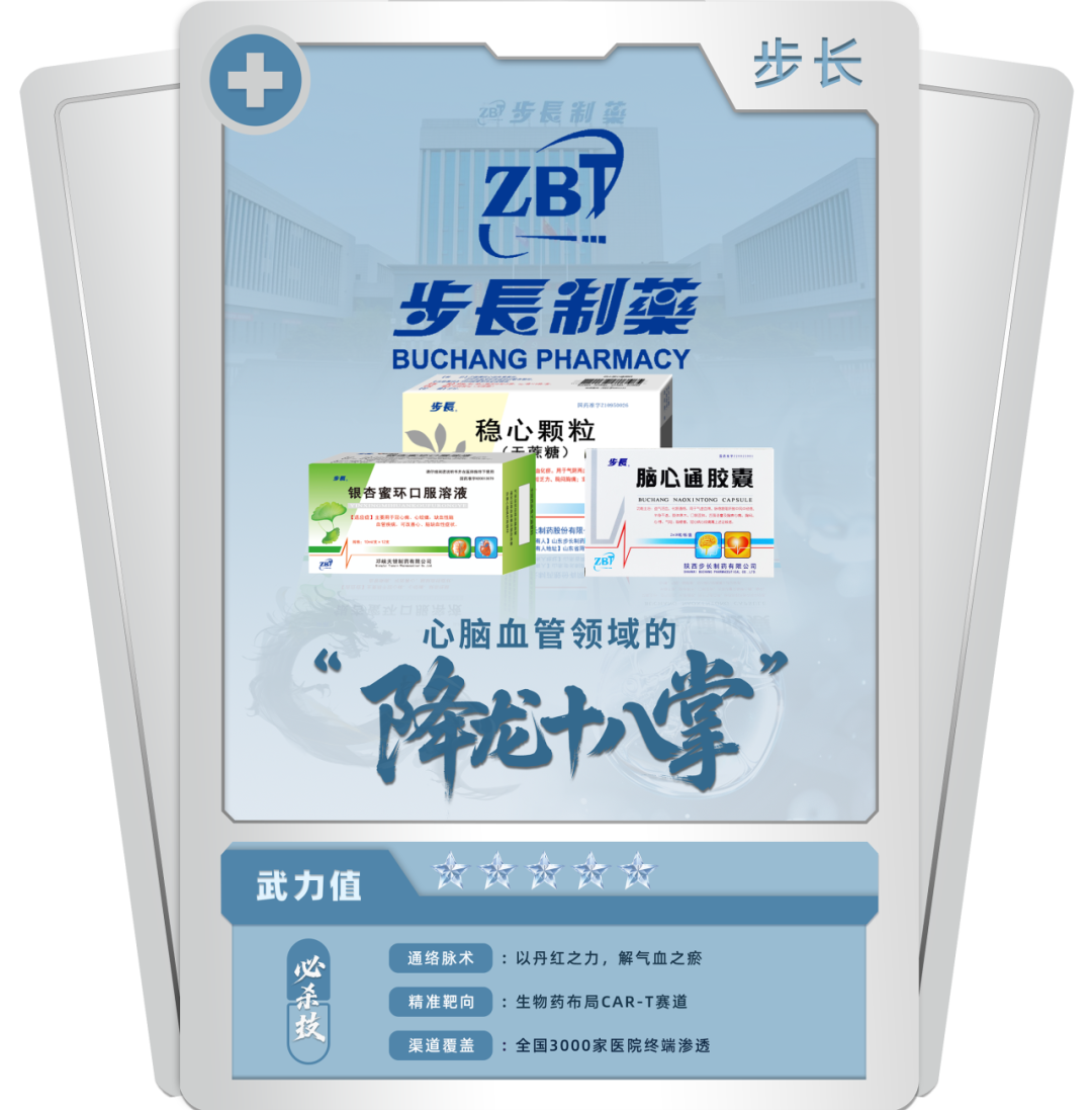 在中成药心血管疾病、中成药妇科、中成药消化系统、中成药五官科、中成药泌尿系统5个大类市场中,步长制药是国内公立医疗机构终端销售TOP10的集团。其中,心脑血管是公司中药的主力布局领域,目前已培育出了脑心通胶囊、稳心颗粒、丹红注射液3个独家中药品种。在妇科疾病领域,步长制药拥有“亿级产品”康妇炎胶囊、红核妇洁洗液等。