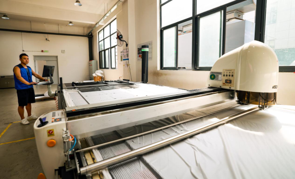 自动裁剪机如同精准的“剪刀手”,将原材料按设计图纸裁切成规整部件,一天即可完成两千个板材的裁剪;热合机以恒定的温度与压力,让产品接缝处牢固又平整……随着自动裁剪机、自动点焊机、热合机等自动化设备的引进,原来一个要40多人的车间现只需要12人左右,不仅如此,ERP、MES、WMS等软件系统高效联动,打通了生产加工的各个环节,实现智慧管控、能源节能管控、智慧采购、智慧排产、智慧生产、智能仓储。