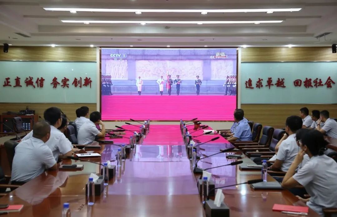 泰安高新区各部门单位干部职工、辖区企业员工及中小学生等怀着无比激动的心情,早早地聚集在会议室、办公室等地,通过电视直播共同观看了这场盛大的阅兵仪式。当整齐划一的徒步方队迈着铿锵有力的步伐走过天安门广场,当先进的武器装备依次亮相展示我国强大的国防力量,当一架架战机呼啸着飞过蓝天,观看现场不时响起热烈的掌声和赞叹声。