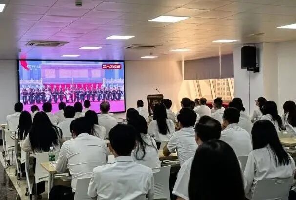 为纪念中国人民抗日战争暨世界反法西斯战争胜利80周年,弘扬以爱国主义为核心的伟大民族精神,增强民族荣誉感,9月3日上午,中山火炬高新区组织机关事业单位、区属企业、社区的广大党员干部群众,集中收看纪念中国人民抗日战争暨世界反法西斯战争胜利80周年大会直播,共同见证这一庄严而神圣的时刻。