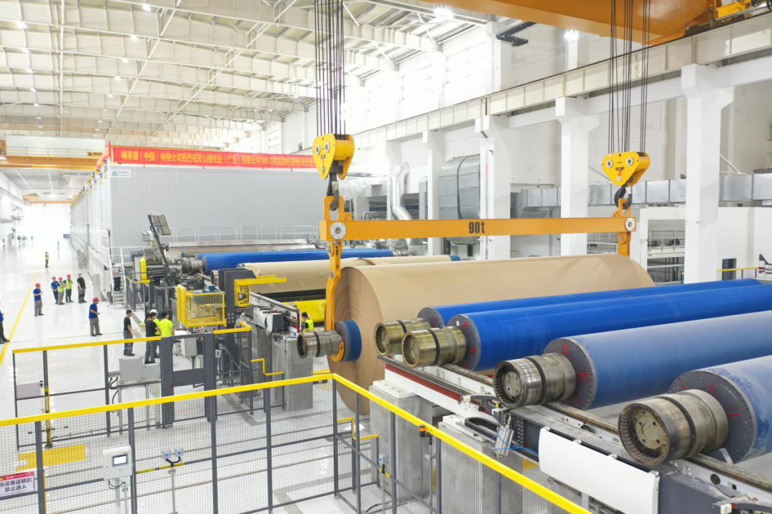走进广东山鹰的生产车间,PM52、PM53两条行业先进生产线正高速运转,每分钟1200米的运行车速、8.6米的净纸幅宽,不仅让单位亩产产能位居行业前列,更直观展现着企业的硬核实力。