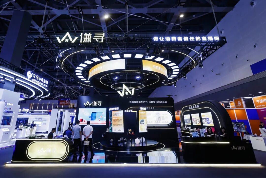 滨江企业谦寻的展位,就像是一个巨大的直播间。“本届数贸会,我们主要会分享县域经济和AI技术应用两方面的经验。”据现场工作人员介绍,当前谦寻在直播带动县域特色产品销售方面经验丰富,还形成了一套“AI+直播”全链路解决方案,他们也希望借着数贸会的契机,能在现场碰撞出更多思维的火花。