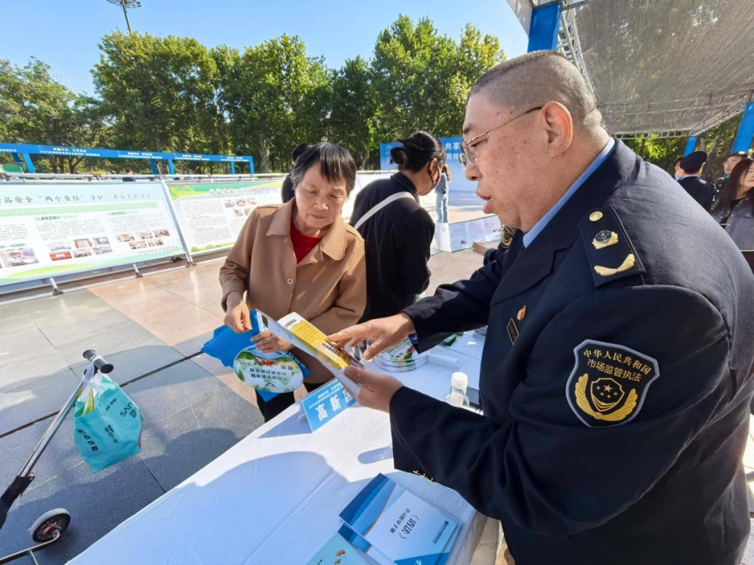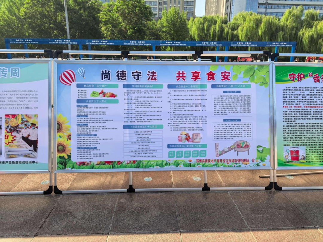 宣传周期间,郑州高新区市场监管局在现场悬挂了2025年食品安全宣传周“尚德守法、共享食安”横幅,并陈列了食品安全宣传手册,12315消费者维权手册等知识手册,活动同时向前来咨询的旅客赠送抽纸,给过往人们带来郑州问候。