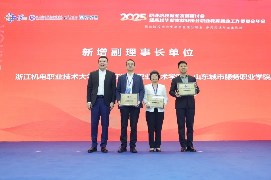 与此同时,山东城市服务职业学院被授予“职业院校就业发展研究基地”并正式揭牌。这一平台的落地,不仅标志着职教就业协作网络的覆盖面进一步拓宽,更意味着跨区域、跨领域的就业工作协同有了实体支撑,为后续共享资源、共破难题搭建了新支点。